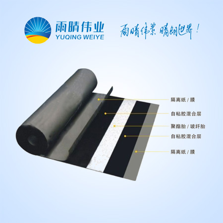 自粘聚合物改性瀝青防水卷材是采用聚酯氈為胎基,兩面涂彈性體(SBS)改性瀝青,上表面覆聚乙烯膜、細砂或礦物粒料等隔離材料,下表面條涂自粘橡膠瀝青,并附可剝離的涂硅隔離膜或涂硅皺紋隔離紙作為隔離材料制成的一種自粘防水卷材。